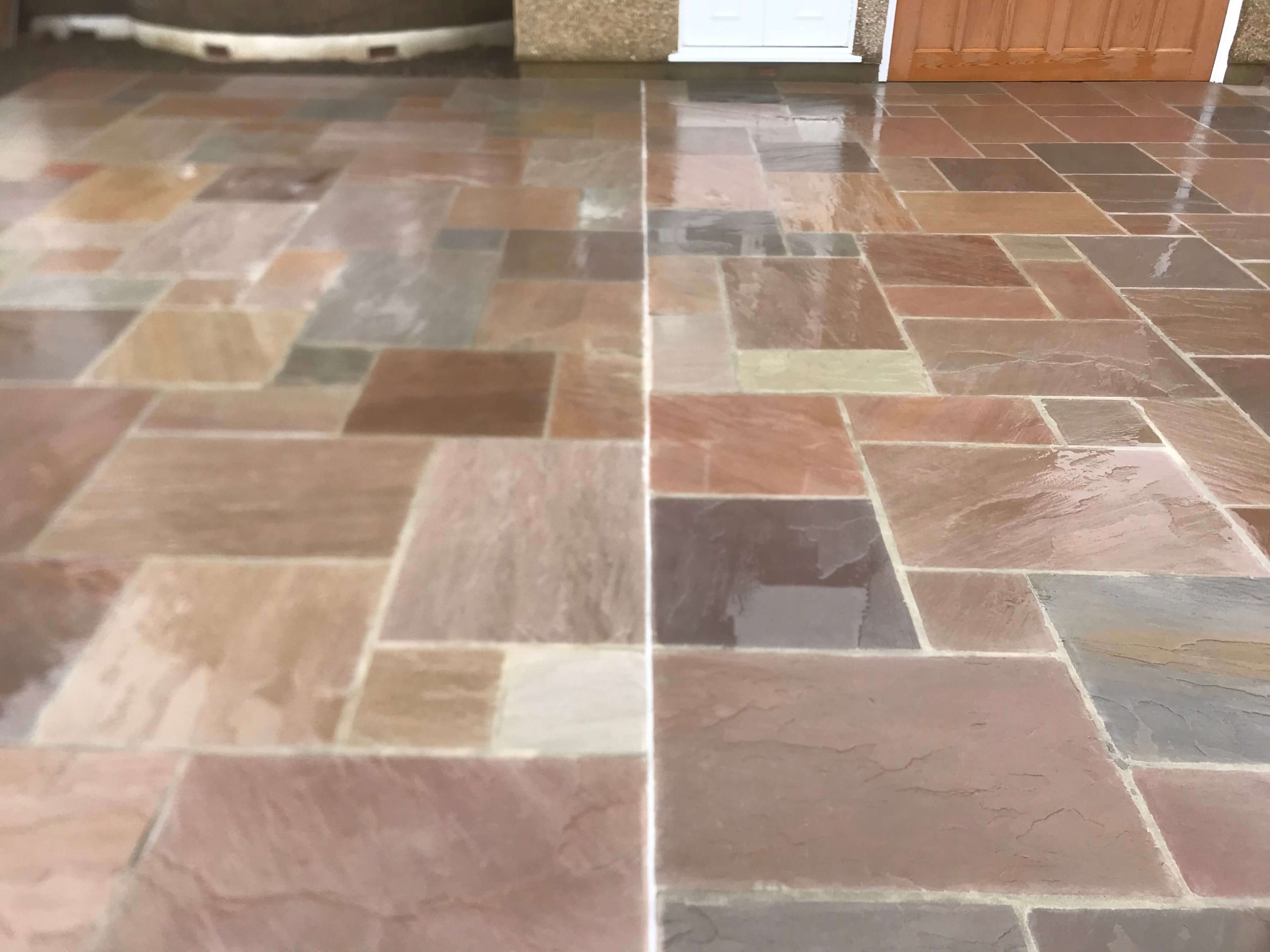 75m2 driveway in Sandstone on reinforced concrete slab and fence in Ashla pattern